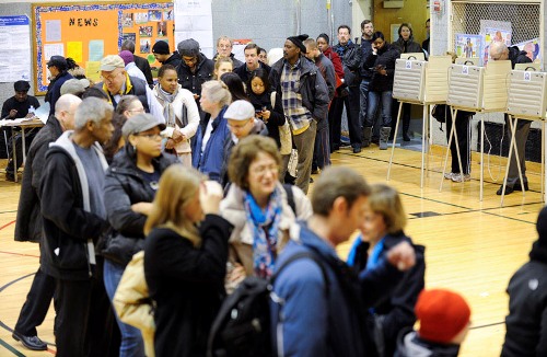 芝加哥南部奧巴馬住所附近的一所學(xué)校,選民參加大選投票