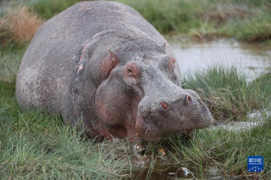 這是6月11日在肯尼亞安博塞利國家公園拍攝的河馬。