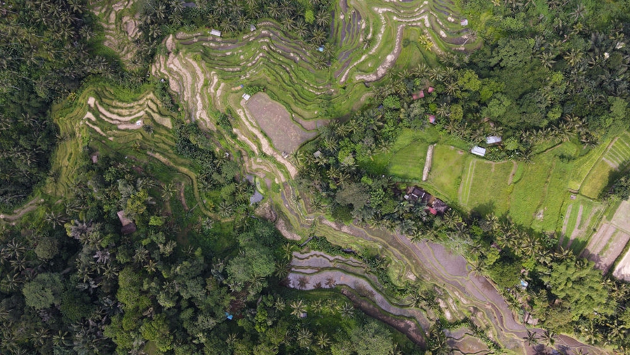 這是2021年12月20日在印度尼西亞巴厘島拍攝的德格拉朗梯田(無人機(jī)照片)。新華社記者 徐欽 攝