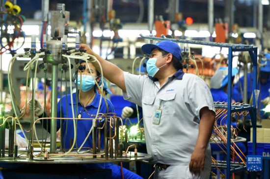 11月8日,在位于泰國羅勇府的泰中羅勇工業(yè)園,泰國工程師那塔武在盾安金屬(泰國)有限公司生產(chǎn)線上工作。