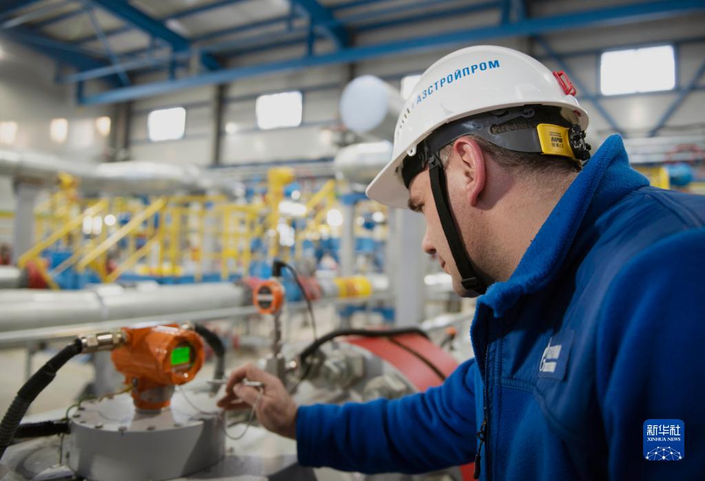 12月18日,在俄羅斯伊爾庫(kù)茨克州,工作人員在科維克塔天然氣氣田內(nèi)巡視設(shè)備。
