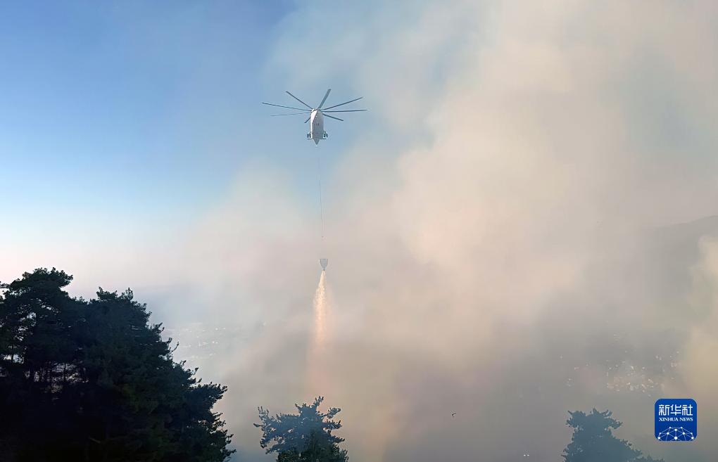 7月17日,一架直升機(jī)在土耳其哈塔伊省貝倫地區(qū)撲滅山火。
