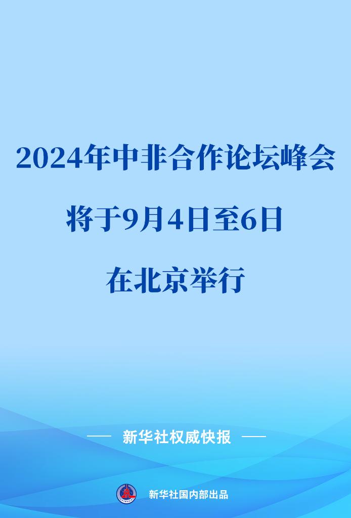 外交部發(fā)言人華春瑩7月30日宣布:2024年中非合作論壇峰會(huì)將于9月4日至6日在北京舉行。本次峰會(huì)主題為“攜手推進(jìn)現(xiàn)代化,共筑高水平中非命運(yùn)共同體”。中非合作論壇非方成員領(lǐng)導(dǎo)人將應(yīng)邀與會(huì),有關(guān)非洲地區(qū)組織和國(guó)際組織代表將出席峰會(huì)有關(guān)活動(dòng)。