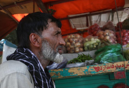 8月13日,在阿富汗首都喀布爾,一位菜販在攤位前等待顧客。新華社發(fā)(塞夫拉赫曼·薩菲攝)