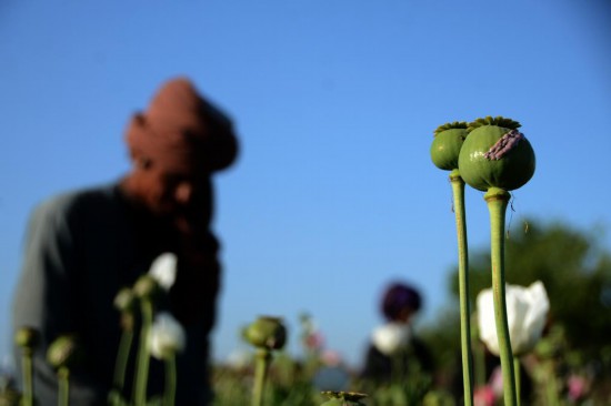 2022年4月3日,農民在阿富汗坎大哈一處罌粟田采摘罌粟。阿富汗臨時政府當天宣布,該國境內禁止罌粟種植及其相關產品交易。新華社發(fā)(薩瑙拉攝)