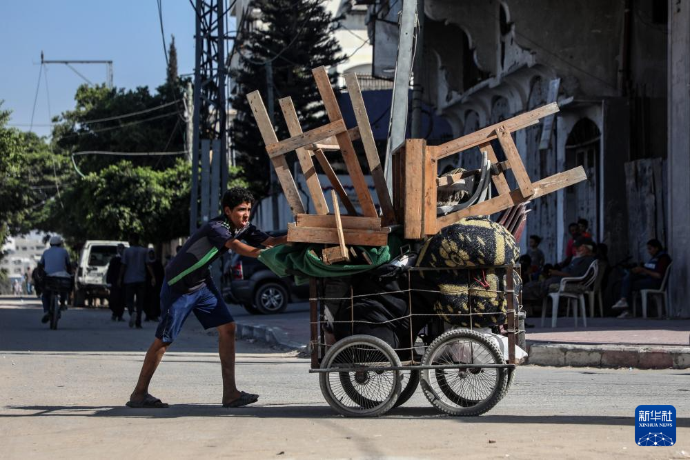9月6日,巴勒斯坦人攜帶家當(dāng)逃離加沙城。