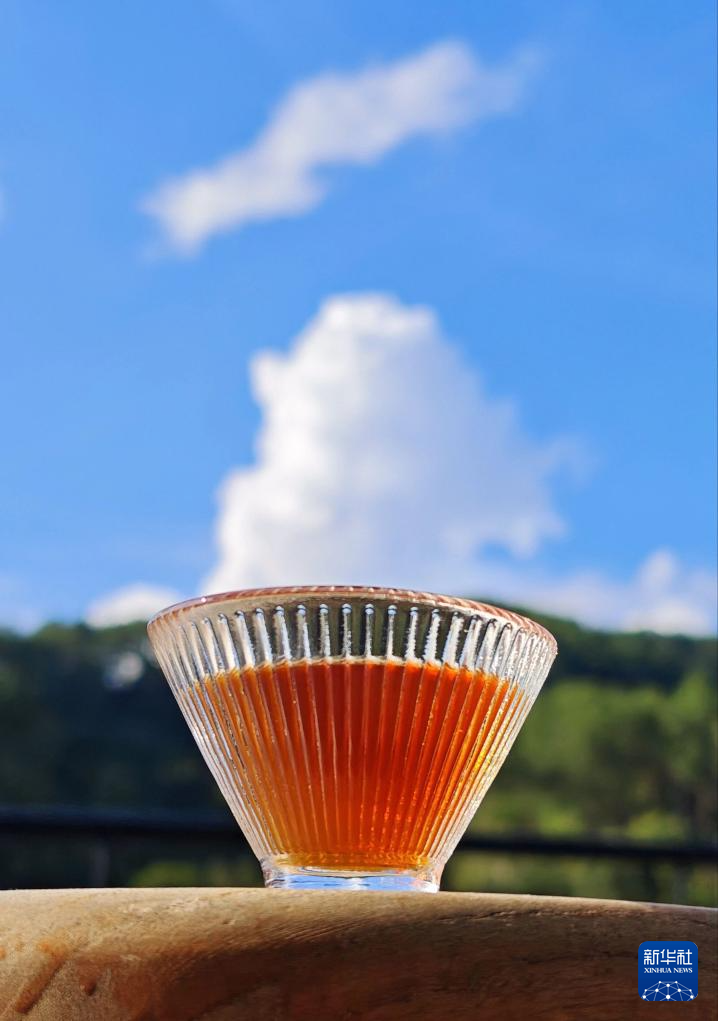 這是普洱市思茅區(qū)南屏鎮(zhèn)南島河村白沙坡小組的“美麗星村·有風(fēng)咖谷”的咖啡師制作的咖啡(9月20日攝)。