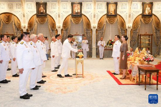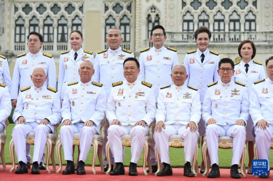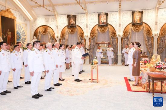 新華社曼谷9月24日電(記者陳倩慈 常天童)由阿努廷·參威拉軍擔任總理兼內(nèi)政部長的泰國新一屆內(nèi)閣24日傍晚在曼谷律實宮覲見泰國國王瑪哈·哇集拉隆功,在御前宣誓就職。
