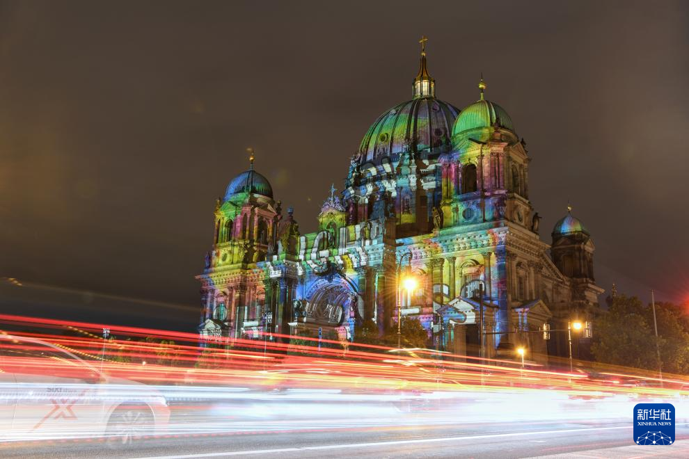 10月9日,德國(guó)柏林大教堂被燈光點(diǎn)亮(長(zhǎng)時(shí)間曝光)。